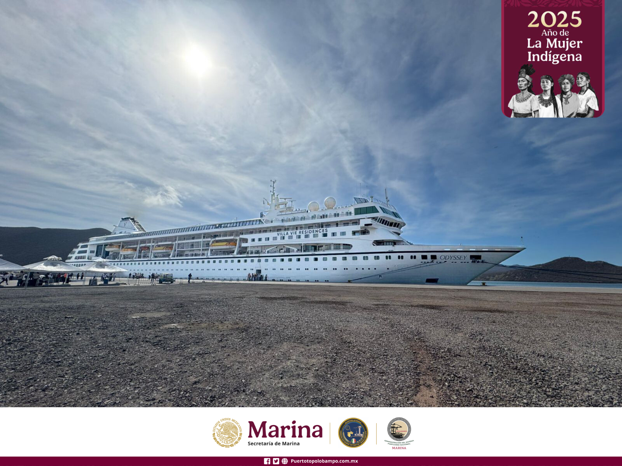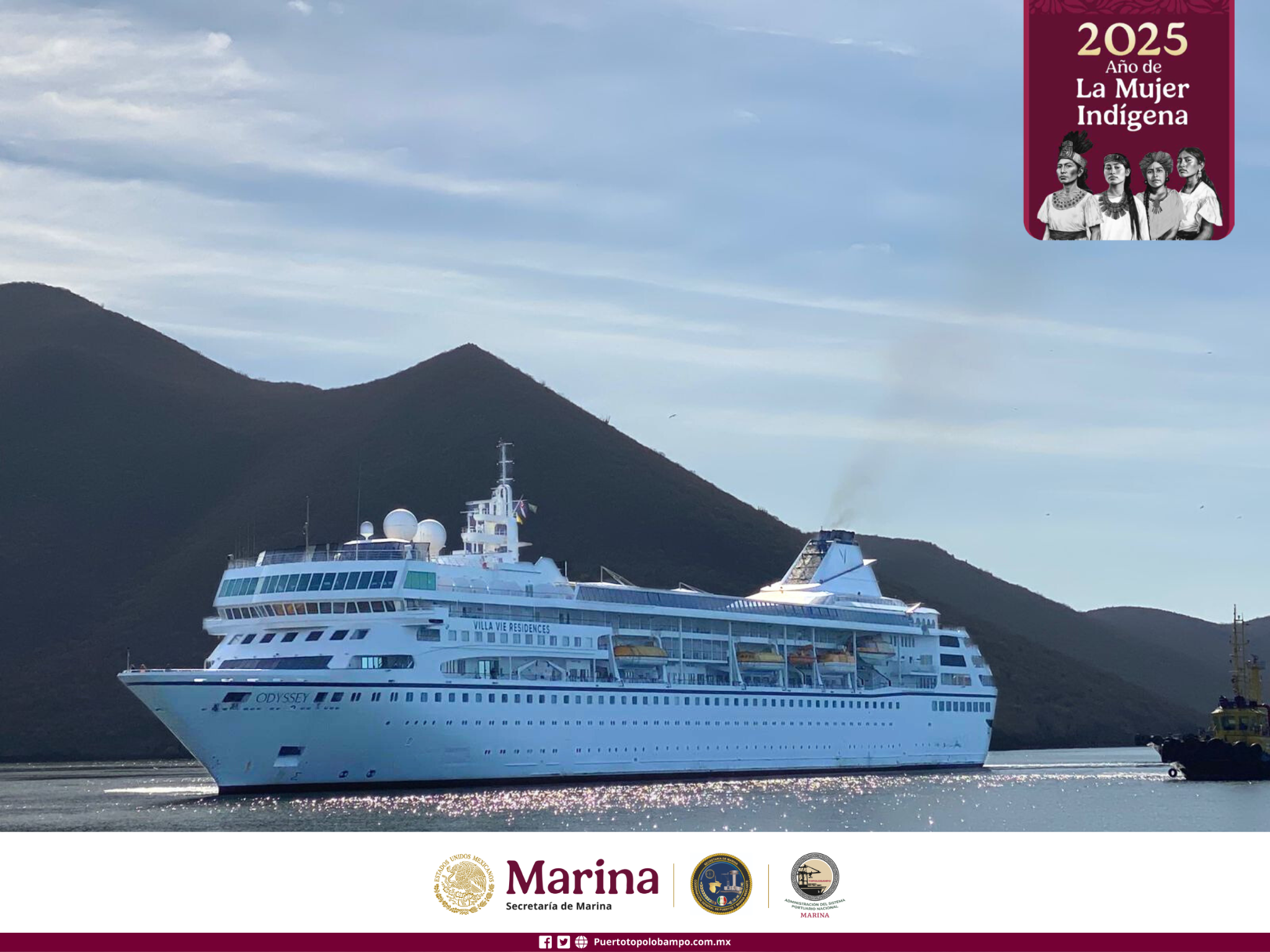 Durante los días 19 y 20 de mayo de 2025, el puerto de Topolobampo se vistió de fiesta para recibir al crucero Odyssey de la línea marítima Villa Vie Residences, con un total de 250 pasajeros y 218 tripulantes. Considerado el crucero sin fin, La imponente embarcación permaneció en el puerto por 2 días, disfrutando de todas las atracciones turísticas que se ofertan.